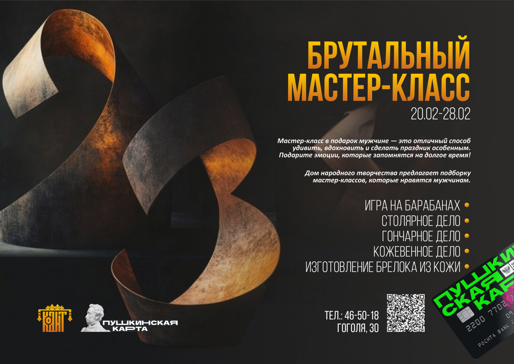 В честь приближающегося Дня защитника Отечества мы подготовили для вас подборку мероприятий, которые точно понравятся мужчинам и доступны по Пушкинской карте!